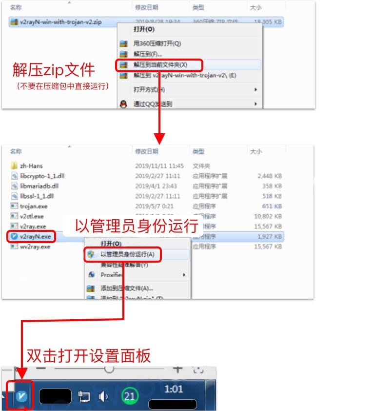 **2. 解压下载的文件包,客户端免安装,鼠标双击运行v2rayN.exe**